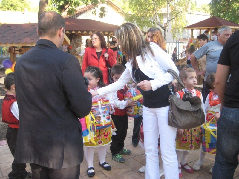 На тържественото откриване присъстваха и членове на МГЕРБ Нова Загора, които поднесоха на малчуганите от четирите групи на детското заведение детски конструктори. Децата поздравиха Общинското ръководство и всички гости с песни, стихове и танци. Кметът Николай Грозев и директорът на детската градина Татяна Пеева прерязаха заедно трикольорната лента, която държаха облечени в народни носии деца.