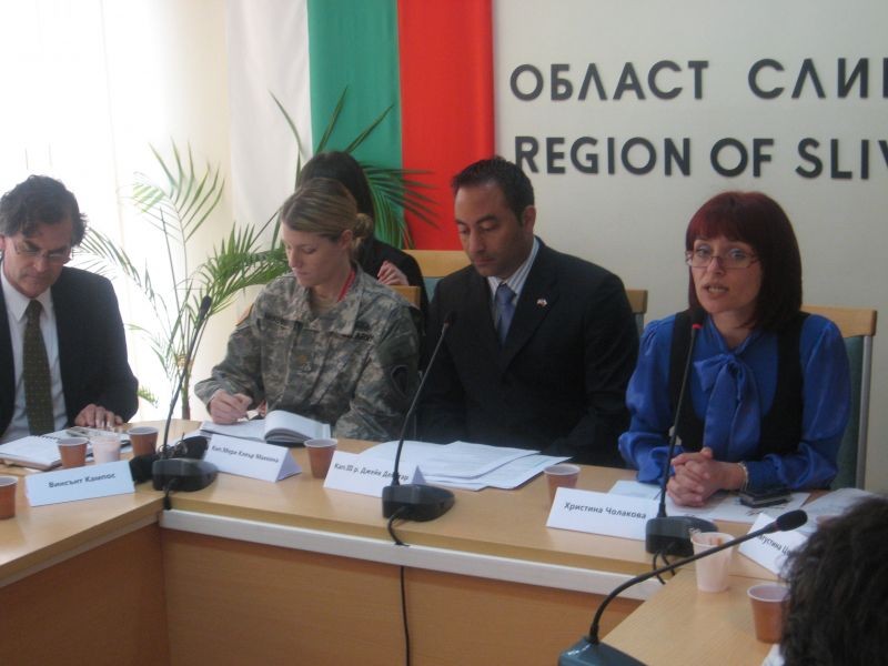 „Срещи като днешната са особено важни, защото хората, живеещи в района на полигон Ново село се вълнуват от всички детайли, свързани със съвместното използване на военните съоръжения. Надявам се, че бидейки в един много по-напреднал етап на нашите срещи, днес да поставим конкретни въпроси и да получим конкретни отговори, така че срещата ни да прерасне в ползотворен диалог”. С тези думи областният управител Христина Чолакова откри поредната среща на Информационния форум за съвместното ползване на военни съоръжения от Българската армия и въоръжените сили, провела се днес под нейното домакинство. Срещата е по проект за разясняване на съвместното експлоатиране от българската и американската армии на военни съоръжения в Ново село, Граф Игнатиево, Безмер и Айтос, реализиран от Фондация Инициатива за Евро-атлантическо образование (ИЕАО) с подкрепата на Посолството на САЩ. Присъстваха капитан трети ранг Джейк Дейстар от Отдела за военно сътрудничество, новоназначеният пресаташе на посолството на САЩ Винсънт Кампос, капитан Мери Клеър Маккена от Сухопътните сили на САЩ в Европа, както и кметове и председатели на общинските съвети от селищата, прилежащи на полигон Ново село, Безмер, Айтос и Граф Игнатиево.