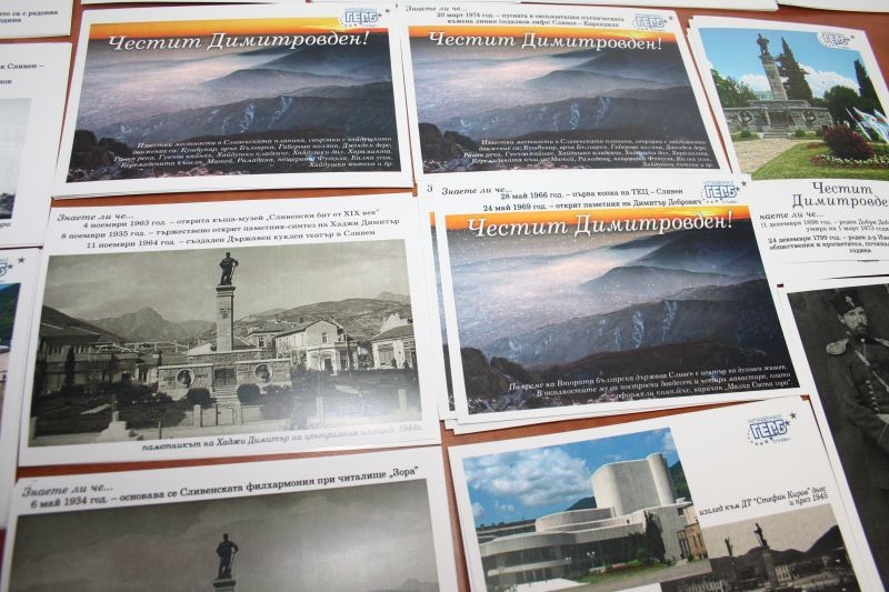 Днес областният организационен секретар на МГЕРБ в Сливен Кристин Спасов припомни, че по проекта бяха отпечатани 500 книжки „Пътеводител на културното наследство на град Сливен” и 1 000 карти към тях. Картите са умален модел на пет информационни табла, които бяха поставени от МГЕРБ на различни места в града с отразени на тях всички културни институти в Сливен. Едното от таблата се намира срещу офиса на ГЕРБ на бул. „Цар Освободител” 17. Тази година младежите продължиха инициативата като отпечатаха 200 картички, 20 различни вида, със стари архивни снимки на символите на града и вписани на тях 50 исторически дати и факти от историята на Сливен. „По този начин честитим Димитровден на гражданите на Сливен и се радваме, че поне 200 души ще научат интересни факти от историята на града”, каза Кристин Спасов.