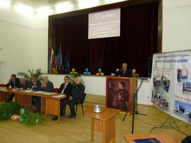 „Изключително ми е приятно да Ви поздравя по случай 50-годишният юбилей на Вашето училище, а чрез Вас да предам поздрави на целия колектив и на всички ученици от Професионална гимназия по електротехника и електроника „Мария Склодовска – Кюри” в Сливен.