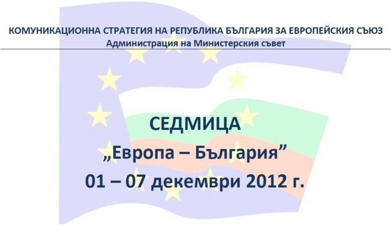 В рамките на Работна програма за 2012 г. на Комуникационната стратегия на Република България за Европейския съюз Областна администрация Сливен, в сътрудничество с общините и читалищата в областта, организира седмица „Европа – България“. Поредицата от културни и информационни събития е посветена на 5-те години членство на Република България в Европейския съюз. Европейската седмица ще бъде проведена в периода от 01 до 07 декември 2012 г. Входът за всички мероприятия е свободен.