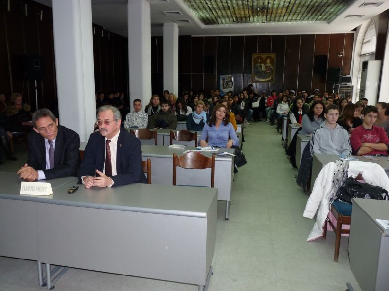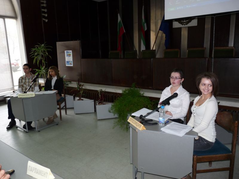 Областният управител на Сливен Марин Кавръков предпочете вместо приветствие към участниците да се включи активно в дебата с младежите и да дискутират политиките на Европейския парламент, насочени към повишаването на жизнения стандарт и раждаемостта, както и ограничаване на емиграцията с цел преодоляване на демографската криза в страните от Европейския съюз. Заместник-кметът на общината Иван Славов също присъства на дебата и пожела успех на младежите. От заформилата се дискусия стана ясно, че средните статистически показатели у нас и в Европа са сходни, а именно по 1.6 деца на семейство. Застаряването на населението е основен проблем и един от приоритетите на правителството трябва да бъде повече млади и високообразовани личности да остават да живеят в България, да работят и отглеждат децата си у нас.