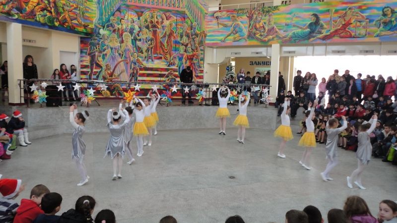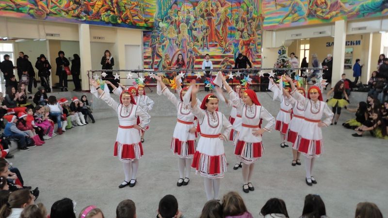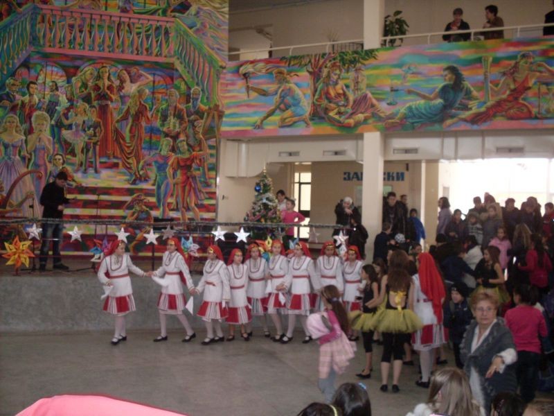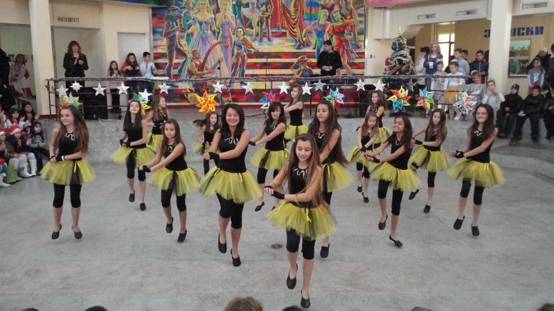 Прекрасно Коледно тържество се състоя на форума на училището около елхата. Участваха ученици от танцов състав "Детелина' от секция Модерен балет-"Да успяваме заедно", от клуб "Шоу-денс" от група за народни песни "Деница" и други.