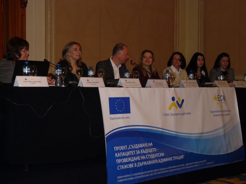 На 11 януари 2013 година в зала „Средец“ на хотел „Шератон София Хотел Балкан“ в столицата се проведе заключителна конференция по проект „Създаване на капацитет за бъдещето – провеждане на студентски стажове в държавната администрация“. Бенефициент по проекта е администрацията на Министерски съвет, като реализацията се осъществява с безвъзмездната финансова помощ на Оперативна програма „Административен капацитет“, която е съфинансирана от Европейския съюз чрез Европейския социален фонд.
