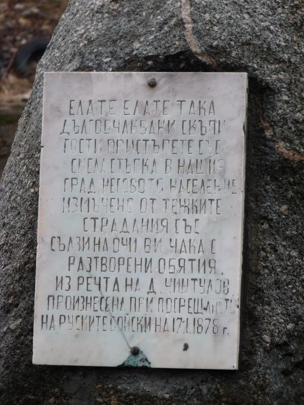 Сред тях е поетът Добри Чинтулов, който сляп и треперещ от вълнение произнася приветствено слово, събрало в едно любовта и благодарността на гражданите към руските освободители.