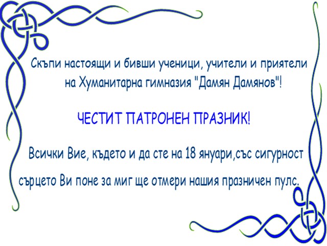 Скъпи настоящи и бивши ученици, учители и приятели на Хуманитарна гимназия “Дамян Дамянов”!