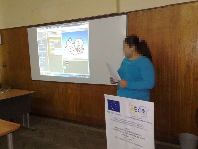 С първата си публична изява на 18 януари участниците в Клуб „Програмиране за супер начинаещи” по проект УСПЕХ показаха впечатляващи умения за работа със Scatch. Доказаха , че с този нов програмен език се дава свобода за моделиране на различни обекти от околната среда. Докато се забавляват с изображения, звуци и анимация, под ръководството на г-жа Станка Тенева, учениците лесно са усвоили принципите на визуалното програмиране.